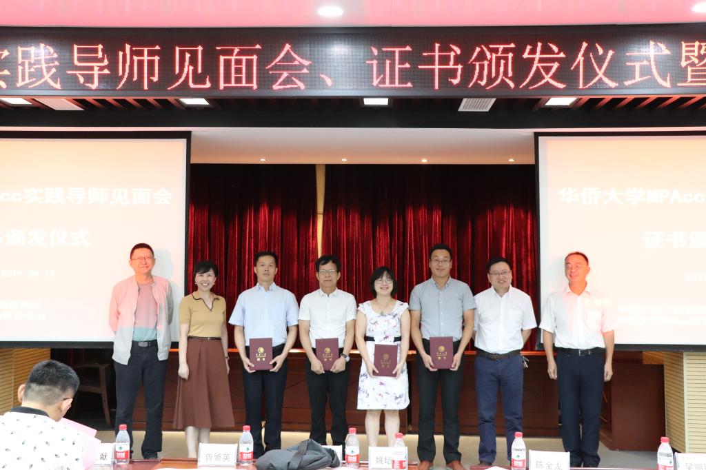 随后由孙锐院长、姚培生书记、曾繁英副院长和陈金龙主任为到场的各位实践导师颁发华侨大学实践导师聘书。