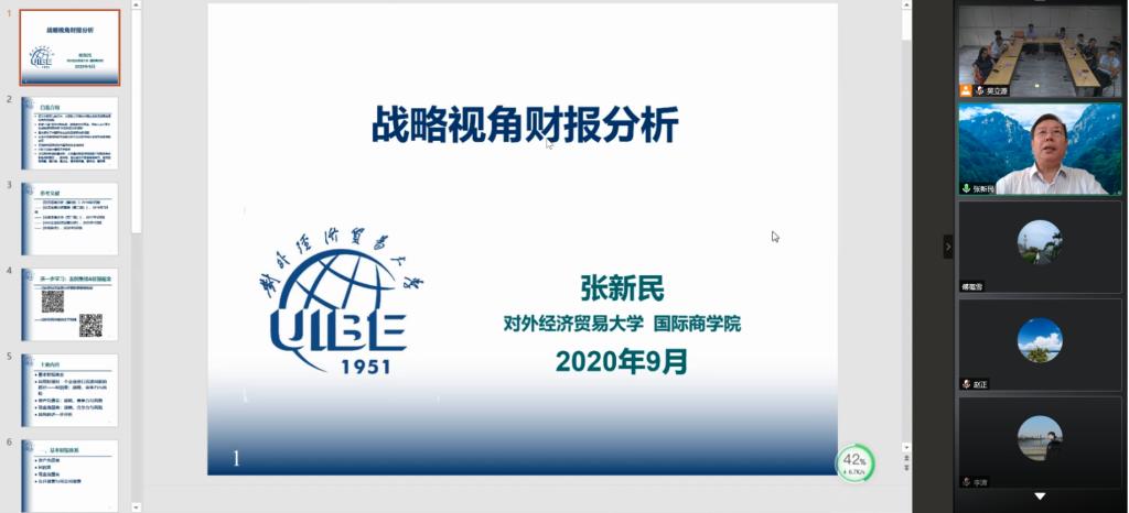 2020年9月25号下午,工商管理学院在腾讯会议进行以“财务报表分析”为主题的学术讲座,主讲人为张新民教授。本次讲座由工商管理学院常务副院长衣长军教授主持,华侨大学MPAcc中心主任陈金龙老师、会计系主任吴立源老师以及近130名MPAcc师生参加本次讲座。