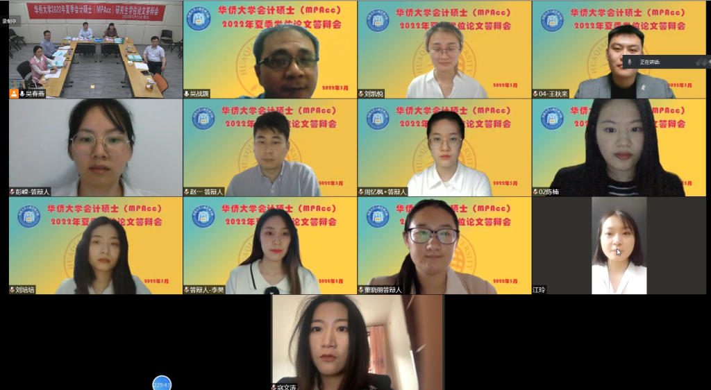 2022年5月13日,华侨大学MPAcc教育中心顺利举行2022届会计硕士研究生学位论文答辩会。本次共计45名会计硕士研究生参加毕业论文答辩。