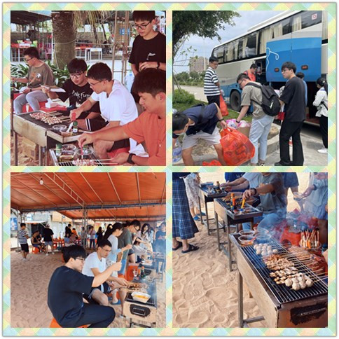 经过将近一个小时的车程,全体同学顺利到达西沙湾海滩附近,大家都积极主动的帮忙把今天需要的烧烤的食材及物流搬到指定地点。