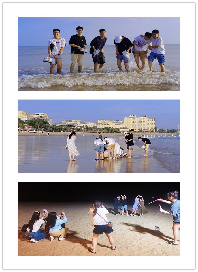 来到海边,与浪花的追逐自是不可少的。同学们三五成群的奔向大海的怀抱里,有的同学在合影留念、有的同学在嬉戏打闹,在沙滩上肆意蹦跑呐喊,尽情的挥洒青春,忘却了生活中的压力与烦恼,尽情的享受在孩提时代的快乐。海水打湿了裙角,海风吹乱了头发,大家仍然很快乐。