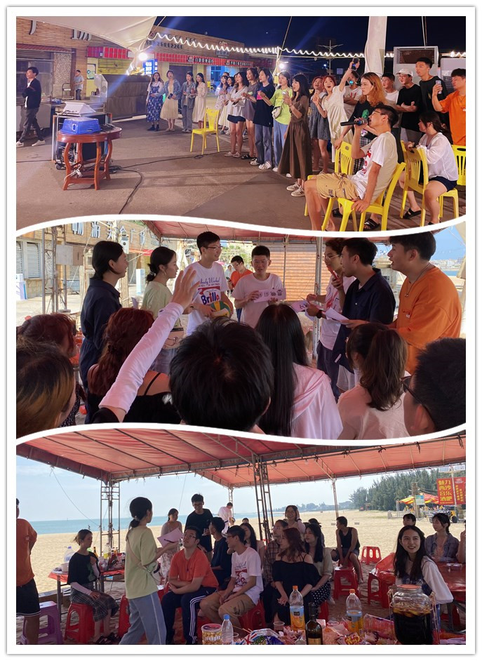 来到西沙湾的烧烤点,大家先在沙滩里铺好桌布进行着一切准备工作,同学们积极主动的架起炉具,升起炭火准备烧烤。好事多磨,大家对生火之类的事都不是很擅长,又是煽,又是吹,在烟雾缭绕的境界里,在大家共同的努力下,炭火终于燃烧起来,与此同时,同学们的热情也与炭火一般,逐渐升温,越来越旺。炭火顺利升起后,同学们争先恐后的帮忙烤肉,阵阵焦香缠绕着同学们的欢声笑语,萦绕在西沙湾的海滩上,融入在夏日的海风中。