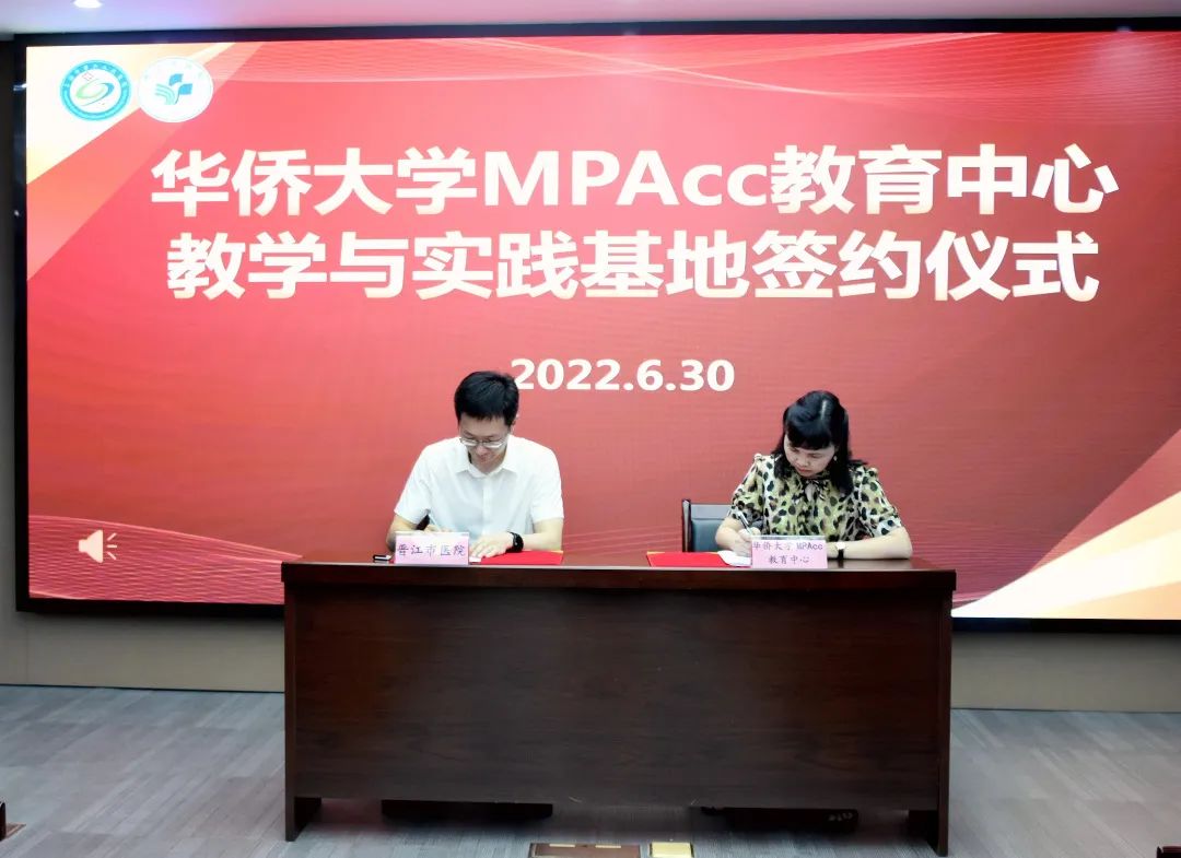 仪式上,晋江市医院(上海六院福建医院)院长陈铭、华侨大学MPAcc教育中心曾繁英主任共同签订教学与实践基地合作协议。