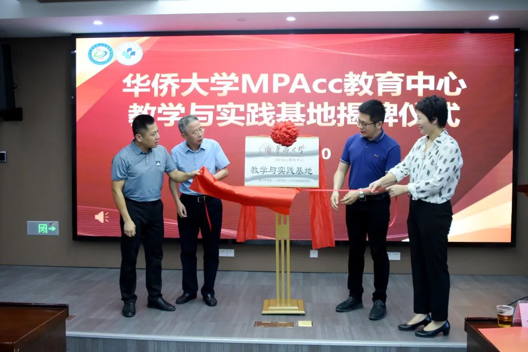 随后,华侨大学工商管理学院党委书记李俊杰、晋江市卫健局局长施嘉奕、晋江市财政局许泳泳总会计师、晋江市医院(上海六院福建医院)党委书记王建波共同为“华侨大学MPAcc教育中心教学与实践基地”揭牌。