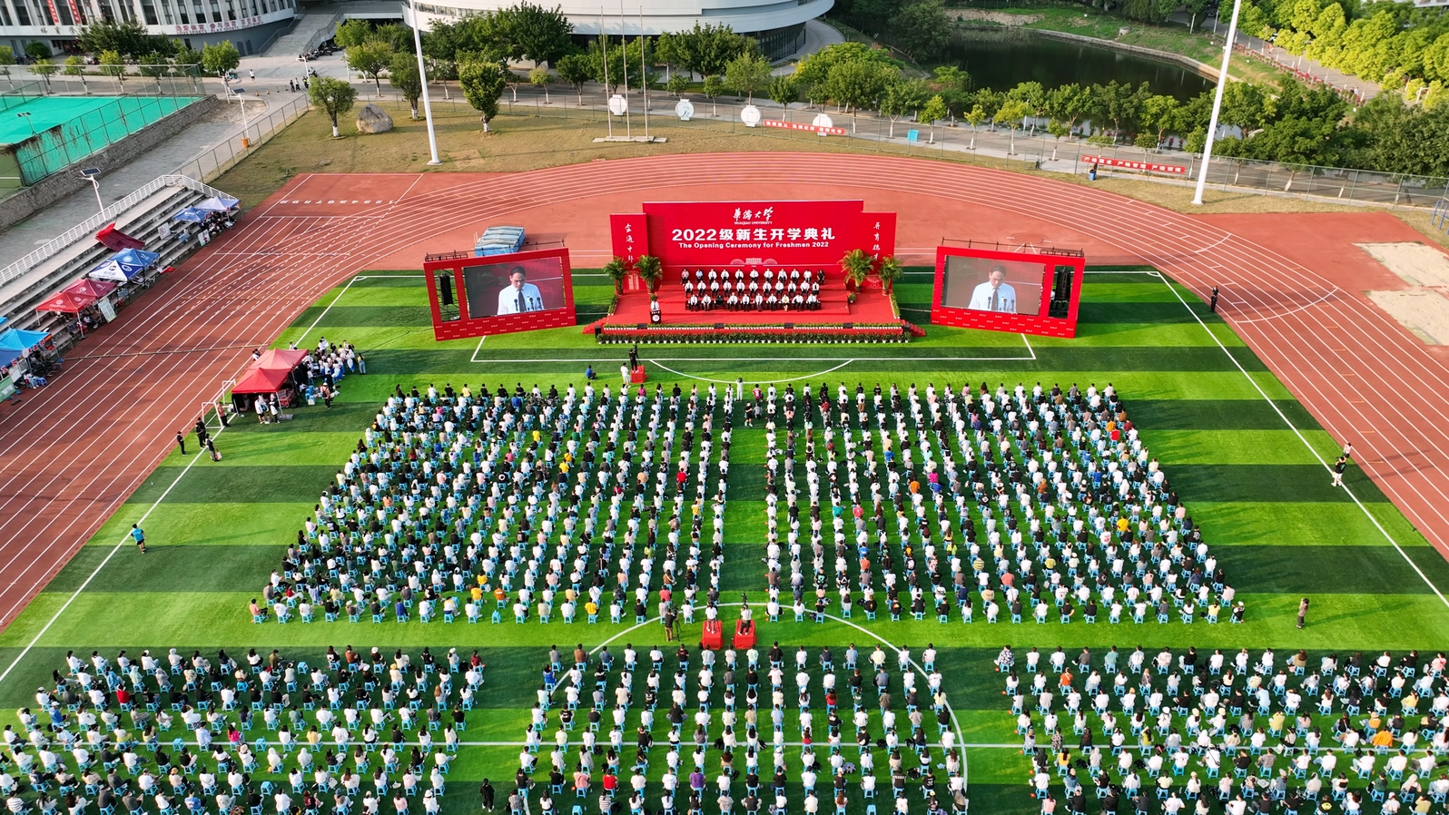 因疫情防控的需要,部分境内外新同学及新生亲友们未能到现场参加开学典礼,学校对典礼进行视频直播,让他们共同参与和见证这一重要的人生时刻。