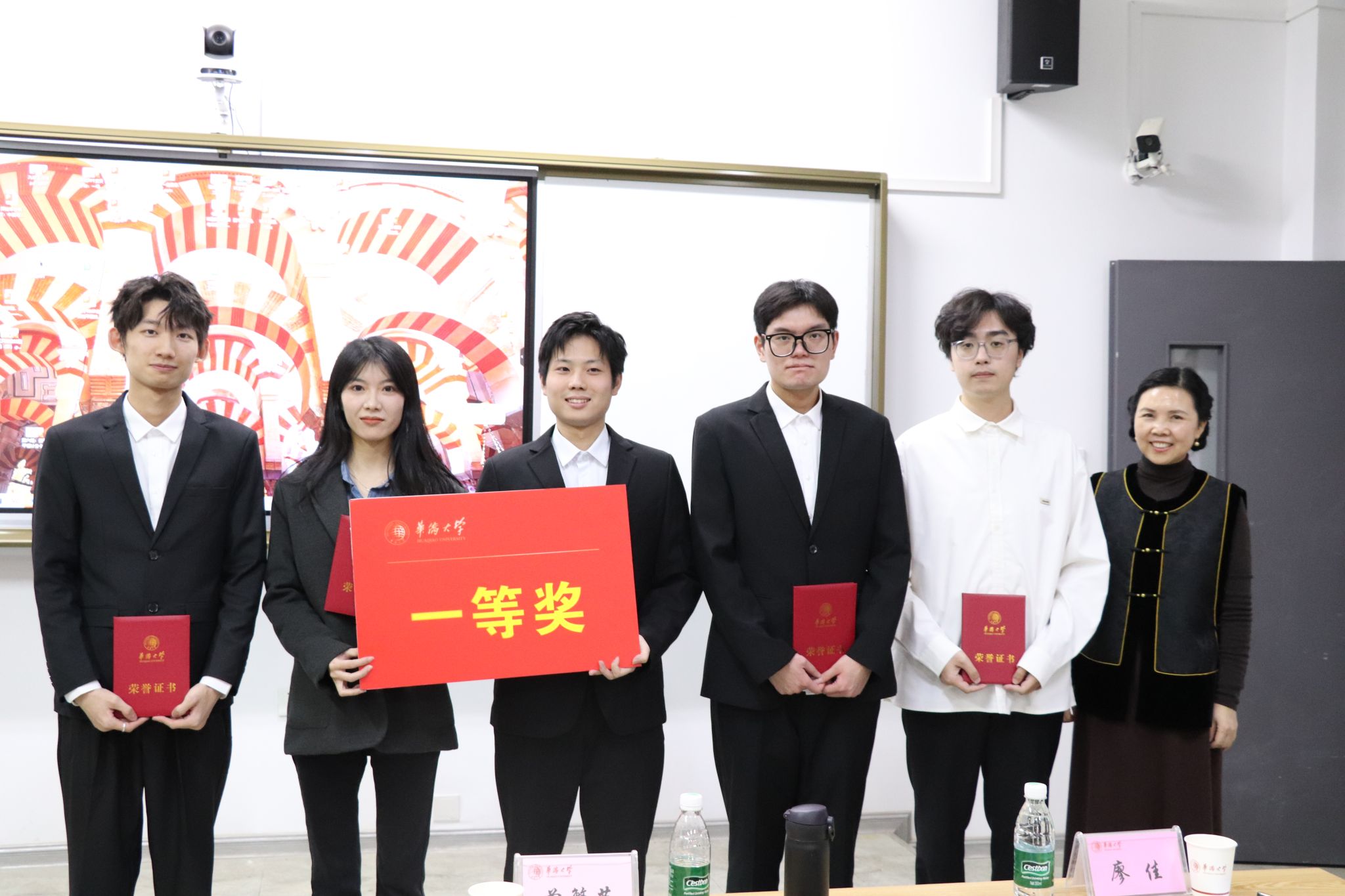 经过现场案例展示、评委提问与队伍答辩等环节的激烈角逐,最终,比完就去开派队、快乐星球队、财经侨楚兴邦队分别斩获一、二、三等奖。各位评委老师为获奖队伍颁奖并合影留念。