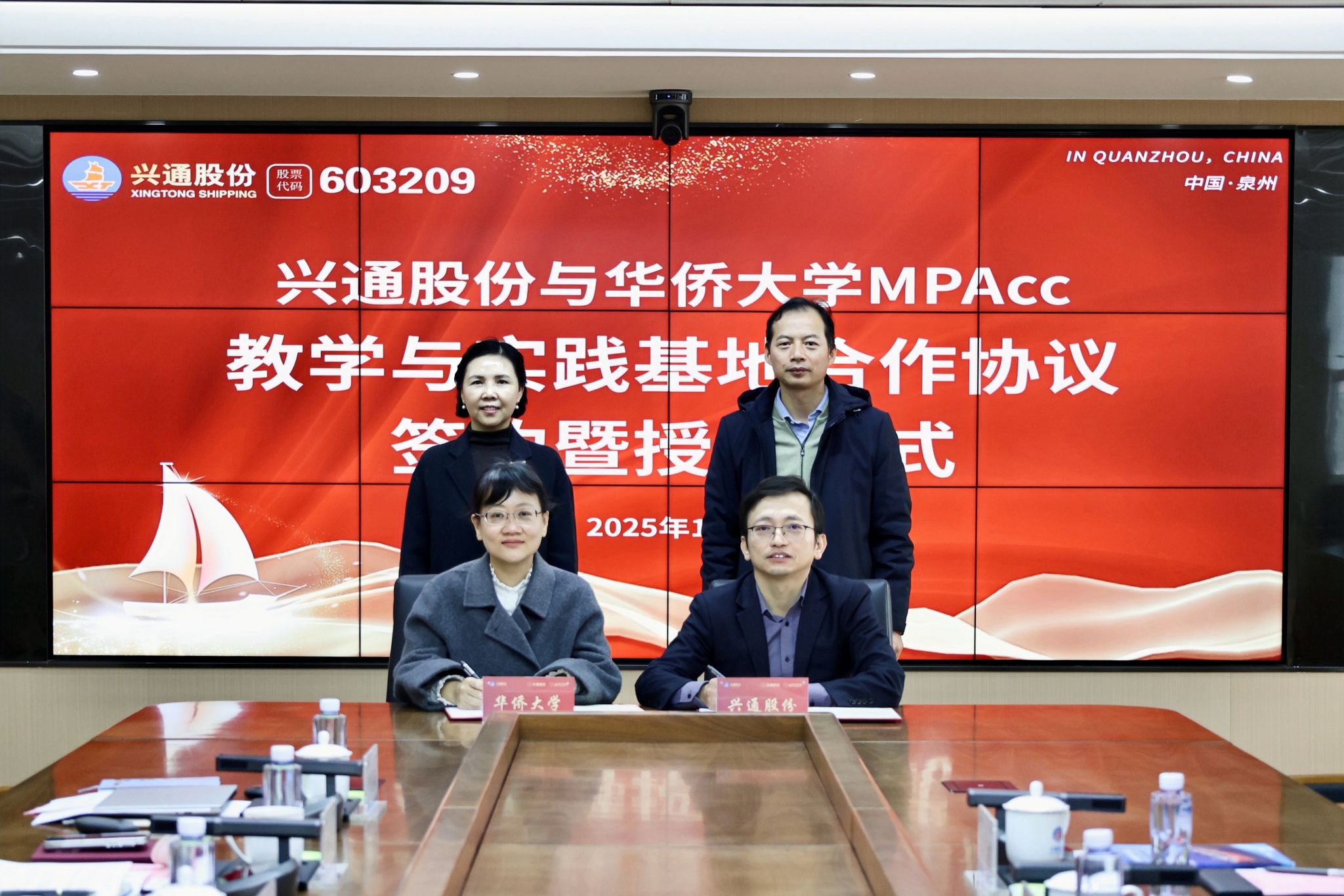 12月26日,我校MPAcc教育中心与兴通海运股份有限公司在泉港举行签约暨授牌仪式,合作共建“华侨大学会计专业硕士(MPAcc)教学与实践基地”。