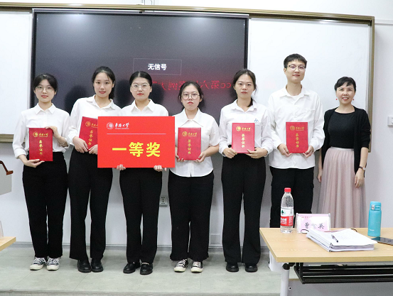 经过现场案例陈述、评委提问、队伍答辩等环节的激烈比拼后,最终六顶思考帽队、所以爱会消失的对不队、老师说的队分别获得了一、二、三等奖,各位评委老师为获奖的队伍颁奖并进行了合影留念。